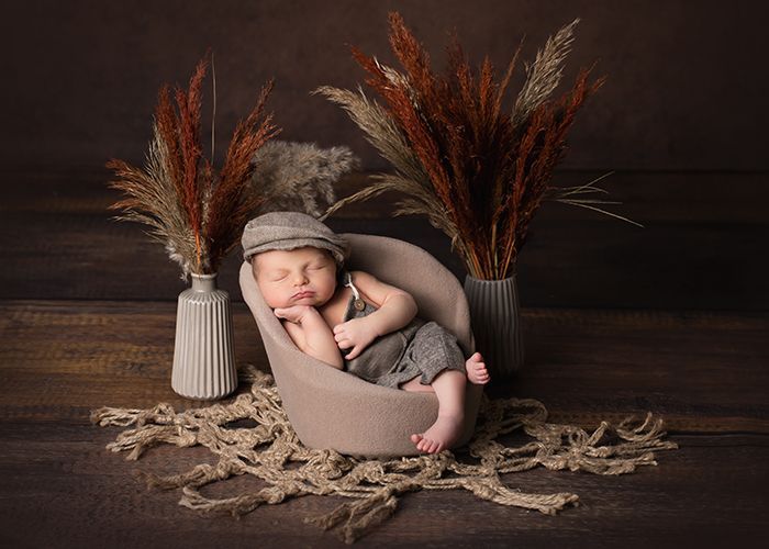 Ich arbeite mit bewusst ausgewählten Requisiten, die das Bild unterstützen, aber nie dominieren. Farben, Formen und Materialien sind harmonisch aufeinander abgestimmt, damit der Blick immer bei Deinem Baby bleibt.